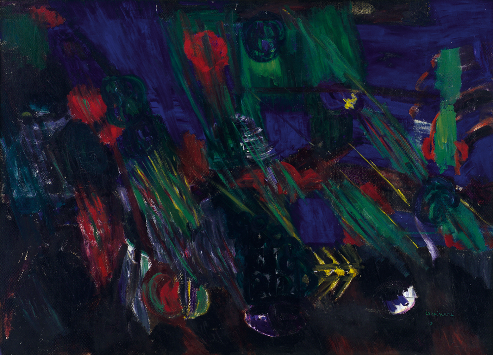 BRUNO CASSINARI Piacenza 28/10/1912 - Milano 26/03/1992 Fiori, 1960 olio su tela cm. 70x98, firma e anno in basso a destra, titolo, firma, anno e timbro della Galleria Zanini Arte Contemporanea al retro, certificato d'autenticità della Telemarket (BS) allegato e su foto, pubblicato su "Cassinari, catalogo generale dei dipinti", volume primo, Edizioni Electa, pagina 313 repertorio 1960 39.