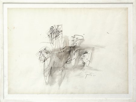 Bepi Romagnoni "Senza titolo" 1959 china e acquerello su carta cm 50x70 firmato