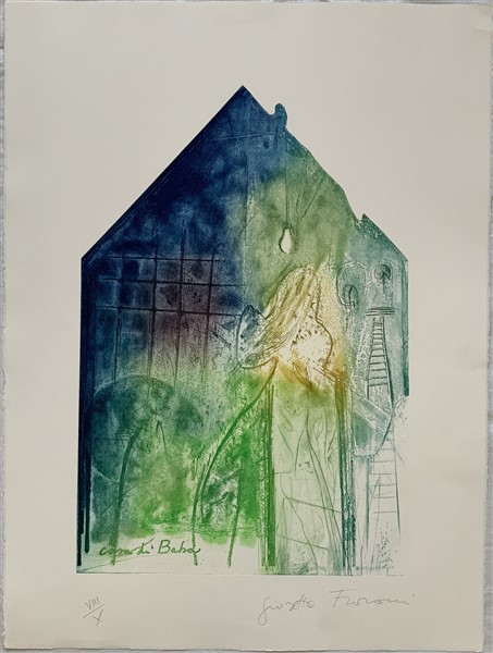 Giosetta Fioroni "Casa di Baba" acquaforte e acquatinta a colori (lastra cm 58x