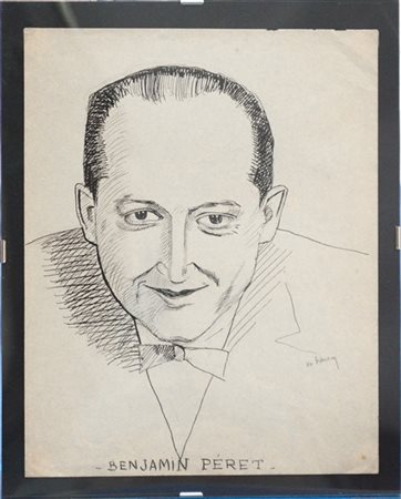Maurice Henry "Benjamin Péret" matita e china su carta cm 27x21,5 firmato in ba