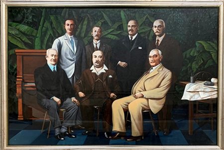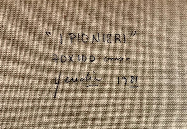 Raul Heredia "I pionieri" 1981 olio su tela cm 70x100 titolato, firmato e datato