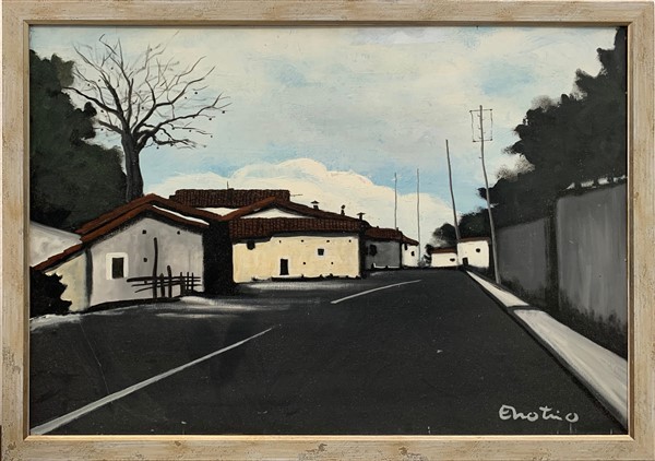 Enotrio Pugliese "Strada di Calabria" olio su tavola cm 49x69. In cornice (dife