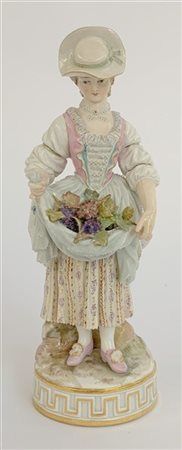 Manifattura di Meissen, "La vendemmiatrice", scultura in porcellana policroma (h. cm 17,5) (lievi difetti)