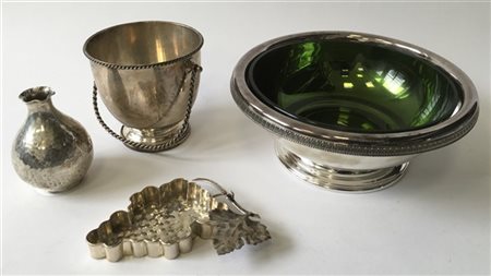 Lotto composto da un portaghiaccio, una ciotola e due oggetti di diverso uso in argento (gr 1450 netti)
