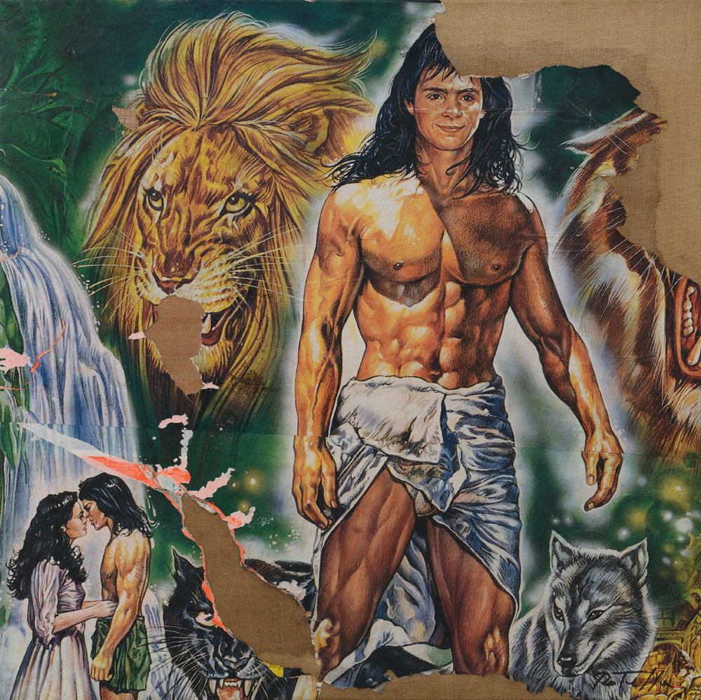 MIMMO ROTELLA Catanzaro 07/10/1918 - Milano 08/01/2006 Coraggio, 1999 decollage su tela cm. 100x100, firma in basso a destra, titolo, firma e anno al retro, dichiarazione d'autenticità dell'artista su foto.