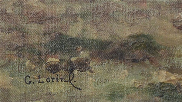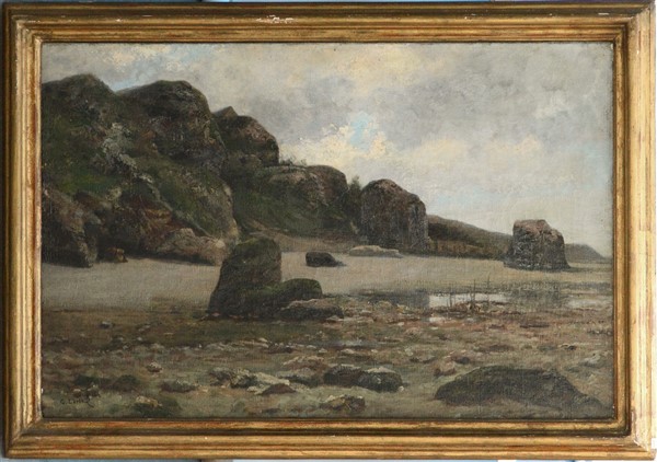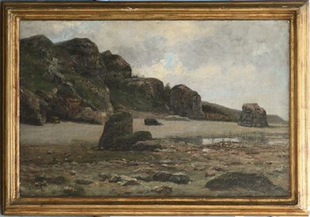 Firma indecifrata "Spiaggia della Normandia" olio su tela (cm 70x90) Firmato in basso a sinistra. In cornice