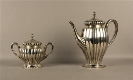 Firmato, datato. Servizio composto da una caffettiera e una zuccheriera in...