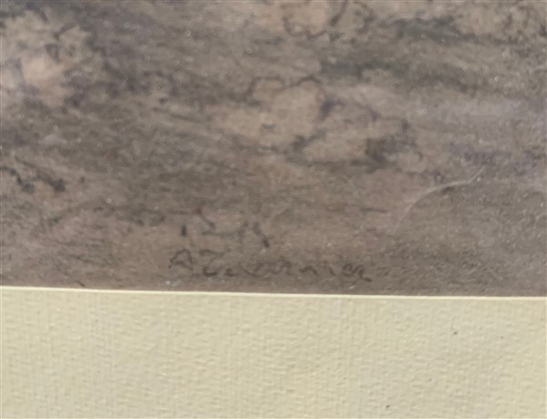 Andrea Tavernier "Paesaggio alpestre" disegno a matita su carta (cm 22x33) Firma