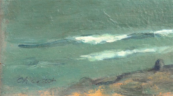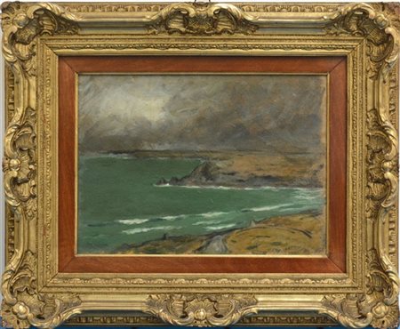 Ignoto "Scogliera" olio su cartone (cm 26x35.5) Reca iscrizione in basso a sinistra. Al retro: iscrizioni. In cornice