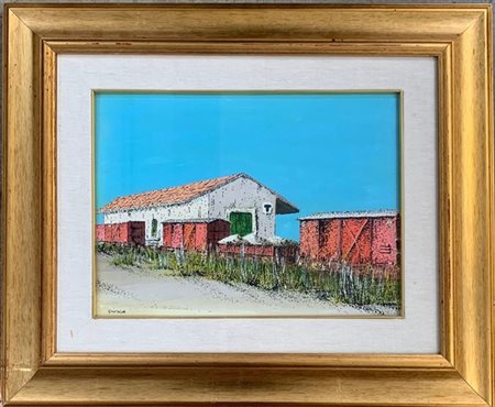 Giuseppe Cappucci (Giusca) "Binario morto" olio su tela (cm 30x40) firmato in basso a sinistra, firmato e titolato al retro. In cornice