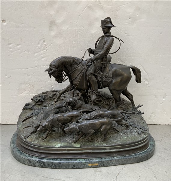 D'Apres Pierre Jules Mene "Fox Haunt" grande scultura in bronzo poggiante su bas