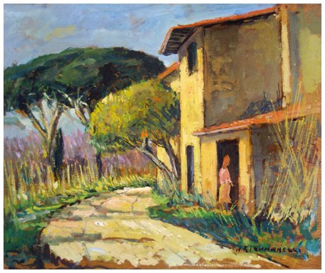 NELLO GIOVANNELLI Livorno 1922 - Livorno 1996 Senza titolo Olio su tavola 30,3 x 35. Firma in b. a d.; sul verso firma e località.