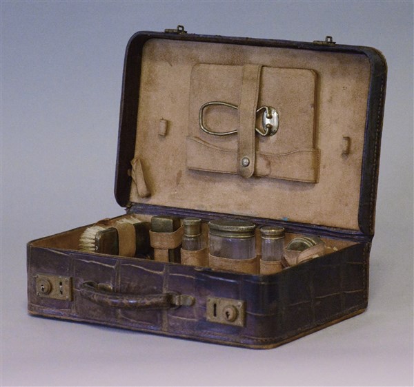 Valigetta/necessaire da viaggio in cuoio stampato cocco, completo di accessori
