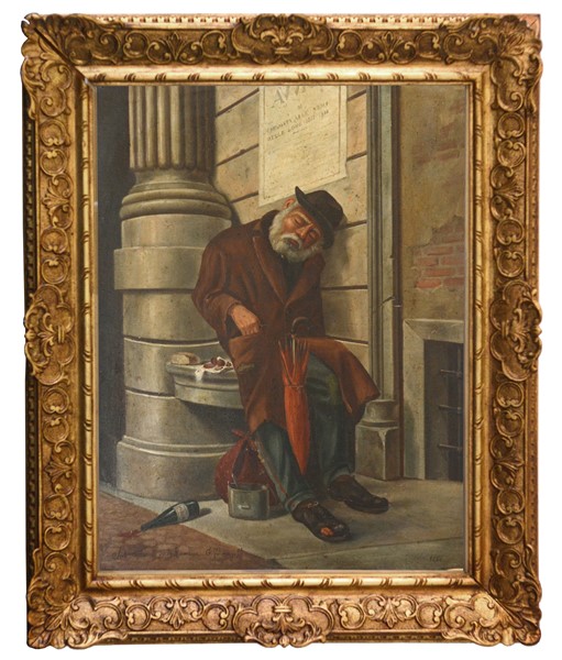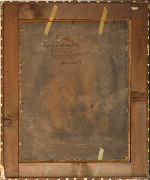 E. Fumagalli" Sul Corso di Porta Romana" 1866, olio su cartone (cm Firmato, titolato in basso a sinistra; datato in basso a destra. In cornice