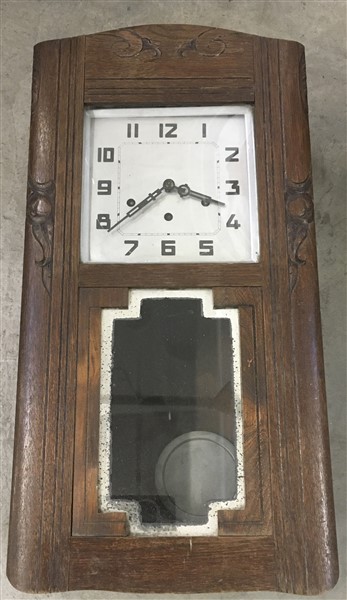 Orologio da parete con cassa in legno e quadrante a cifre arabe, movimento a tr