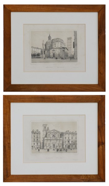Lotto composto da due incisioni raffiguranti la Chiesa dei Gesuiti e la Chiesa della Consolata a Torino (mm 290x365 circa) In cornici (difetti)