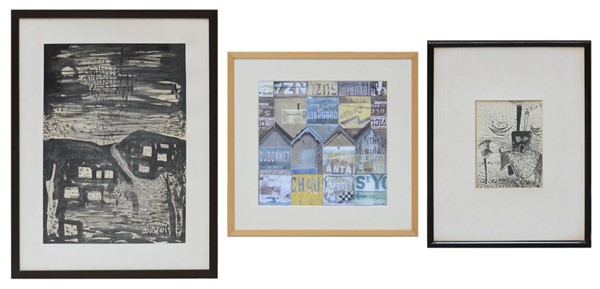 Lotto composto da due disegni a china su carta di cui uno firmato Zani e una stampa a firma indecifrata, misure differenti. In cornici