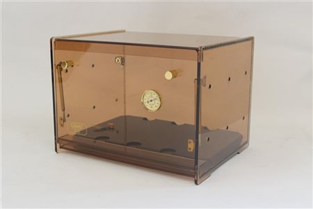 Scatola portasigari in plexiglass marcata Gerard Pere et Fils Genève (cm 35x33x34) (lievi difetti)