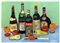 GIOVANNI MARCH Tunisi 1894 - Livorno 1974 5 bottiglie e frutta, 1973 Olio su tela 50 x 70. Firma in b. a d.; sul verso firma e titolo + scritta con data, firma e timbro galleria Cavallo, Livorno.