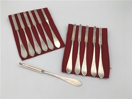 Gruppo di dodici posate da crostacei in argento. Titolo 800 (g 450)