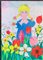 Ignoto "Senza titolo" tempera su carta raffigurante bambina tra i fiori (cm 100
