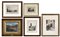 Lotto composto da cinque stampe a colori e colorate a mano, soggetti, epoche e misure diverse, in cornici (difetti)