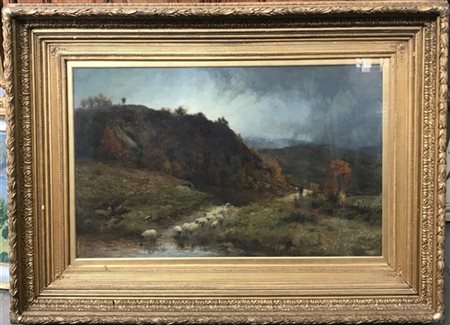 George Aikman (1830–1905) "Al pascolo" olio su tela (cm 68x106) Firmato in basso a sinistra. In cornice