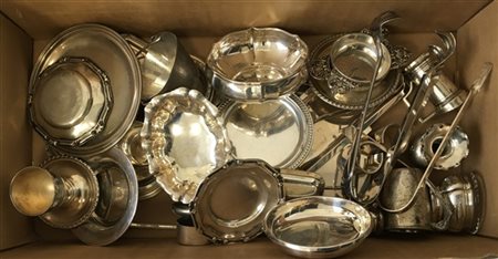 Scatola contenente numerose bomboniere e oggetti diversi in argento (g 2100)