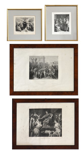 Lotto composto da quattro incisioni a soggetto storico, epoche e misure diverse
