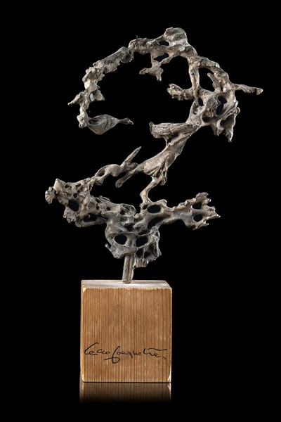 Cecco Bonanotte "Senza titolo" multiplo- scultura in bronzo su base in legno (h