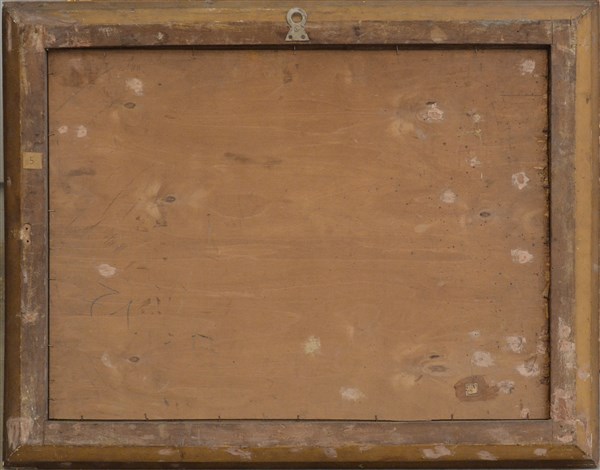 Maestro del XX Secolo "Cantiere navale" olio su compensato (cm 57x75) In cornice del XIX Secolo (difetti)