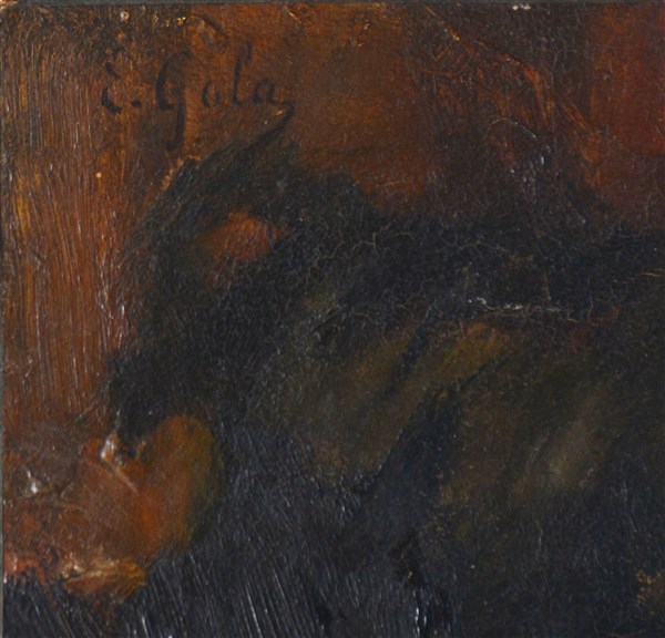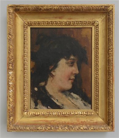 Ignoto lombardo del XIX Secolo "Profilo femminile" olio su tela (cm 36x27) Reca iscrizione E.Gola in alto a sinistra. In cornice