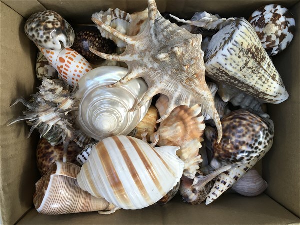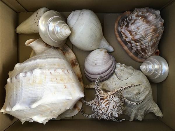 Lotto di due cartoni conteneti numerose conchiglie (difetti)