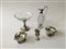 Lotto composto da una coppia di salierine biensate in argento inglese, un centrotavola e due oggetti diversi in vetro e argento (g 200)