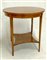 Tavolino da centro lastronato e filettato in noce, gambe dritte e rastremate riunite da pianetto sagomato (cm 65x68) (lievi difetti)