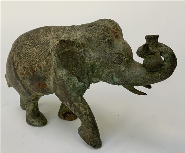 Manifattura orientale, elefante in bronzo a patina verde (difetti)