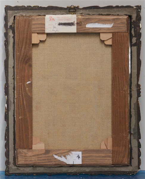 "Milano, Naviglio" tecnica mista su carta applicata a tela (cm 45x34) Firmato in basso a destra. In cornice (difettI)