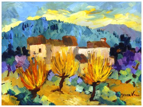 RENZO MERCATINI Chianni 1924 - Livorno 1984 Salici rossi Olio su tela 60 x 81. Firma in b. a d.; sul verso titolo, firma e località.