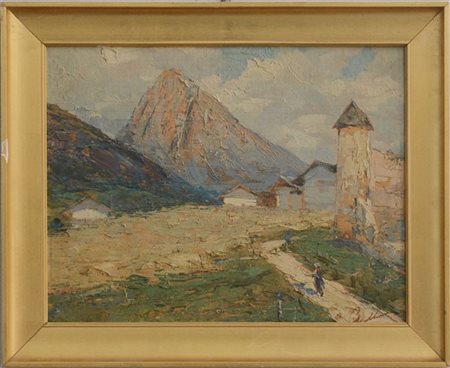 "Col Rosà, Cortina" olio su compensato (cm 33x41.5) Firmato in basso a destra. Al retro: firmato e titolato. In corncie