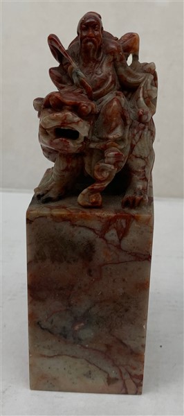A soapstone seal with immortal on Pho dog on top