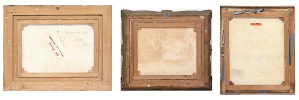Lotto composto da tre dipinti a olio su tela raffiguranti paesaggi, di autori, tecniche e misure diverse