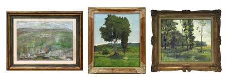 Lotto composto da tre dipinti a olio su tela raffiguranti paesaggi, di autori,