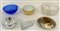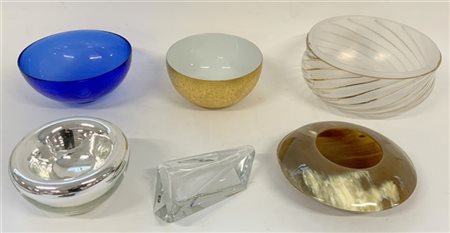 Lotto composto da sei centrotavola di forme e materiali diversi, uno dei quali della manifattura di Murano, Guido Ferro ed un'altro in cristallo di Boemia, firmato Desna. (difetti)