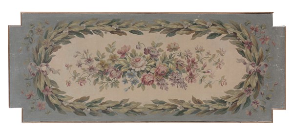 Dipinto a tempera preparatorio per la realizzazione di una copertura Aubusson, per la seduta di un divanetto. Secolo XIX (cm 43x107) (difetti e mancanze)