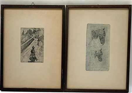Quattro foto-riproduzioni di incisioni di Fattori (cm 29x22 il foglio) ed una f