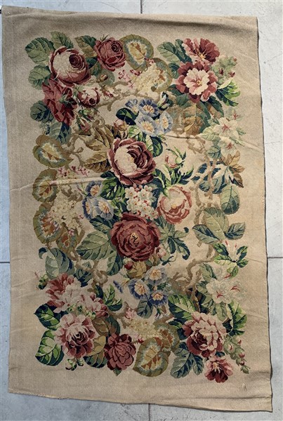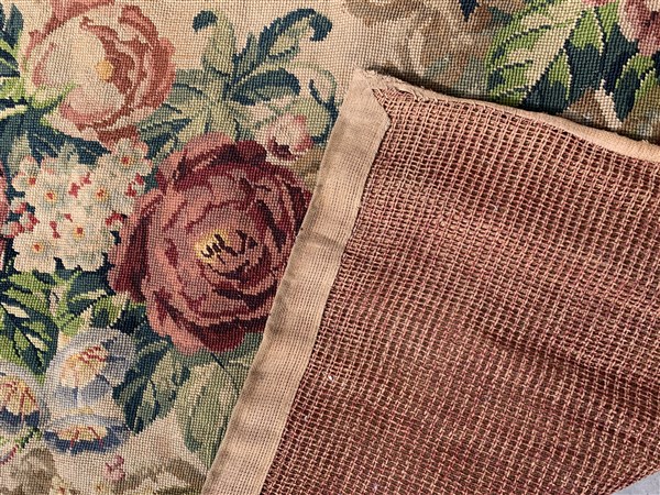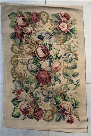 Tappeto piccolo punto, Francia, secolo XIX. Decoro floreale con mazzi di rose s