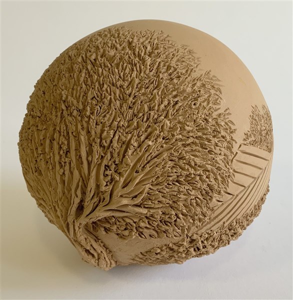Firma indecifrata "Senza titolo" multiplo in terracotta scolpita e graffita (d