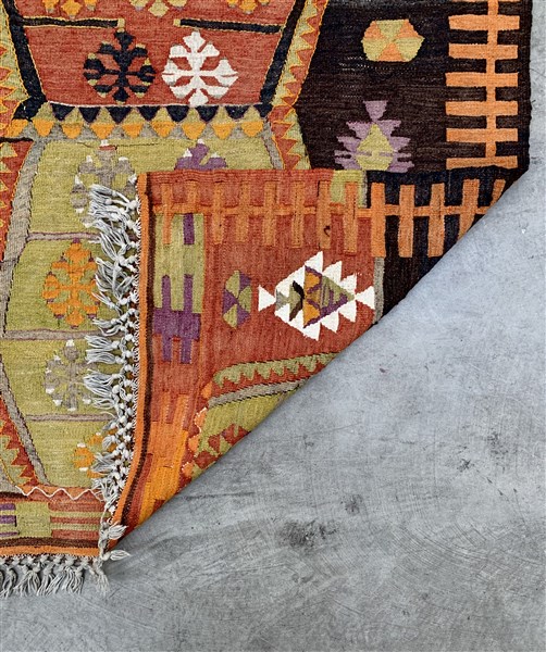 Tappeto passatoia Kilim, Anatolia, secolo XX. Decoro con sette esagoni di diffe