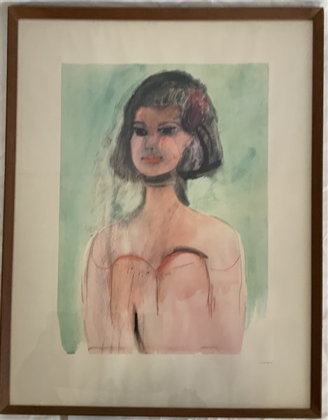 due litografie a colori, una raffigurante un volto di ragazza, una un paesaggio