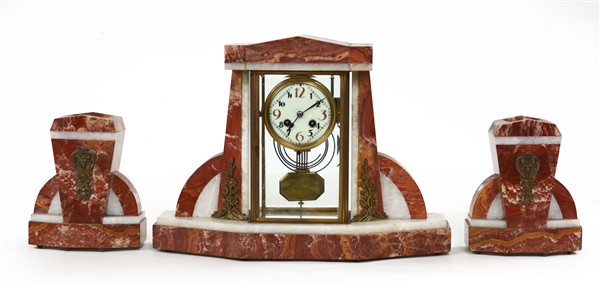 ANONIMO Trittico da camino in marmo rosso e bianco Epoca primo quarto XX Secolo